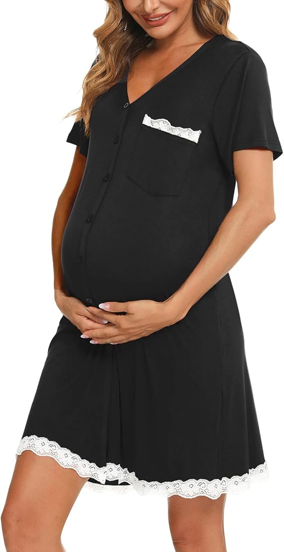 - 【Ideal Gift】This soft and casual maternity nightgown makes an excellent gift, either to a nursing mother or to an expectant mother, they can wear these pyjamas in normal life during pregnancy and after breastfeeding.