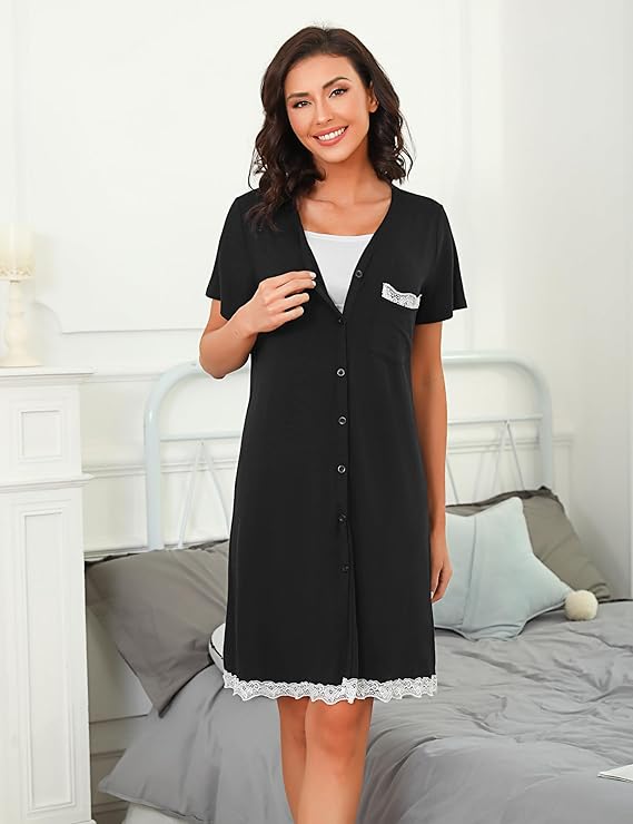 - 【Easy to Breastfeeding】V neck and buttons down design, which makes breastfeeding a simple and enjoyable process; You can wear this sleeping dress in normal life after the period of pregnancy and breastfeeding.